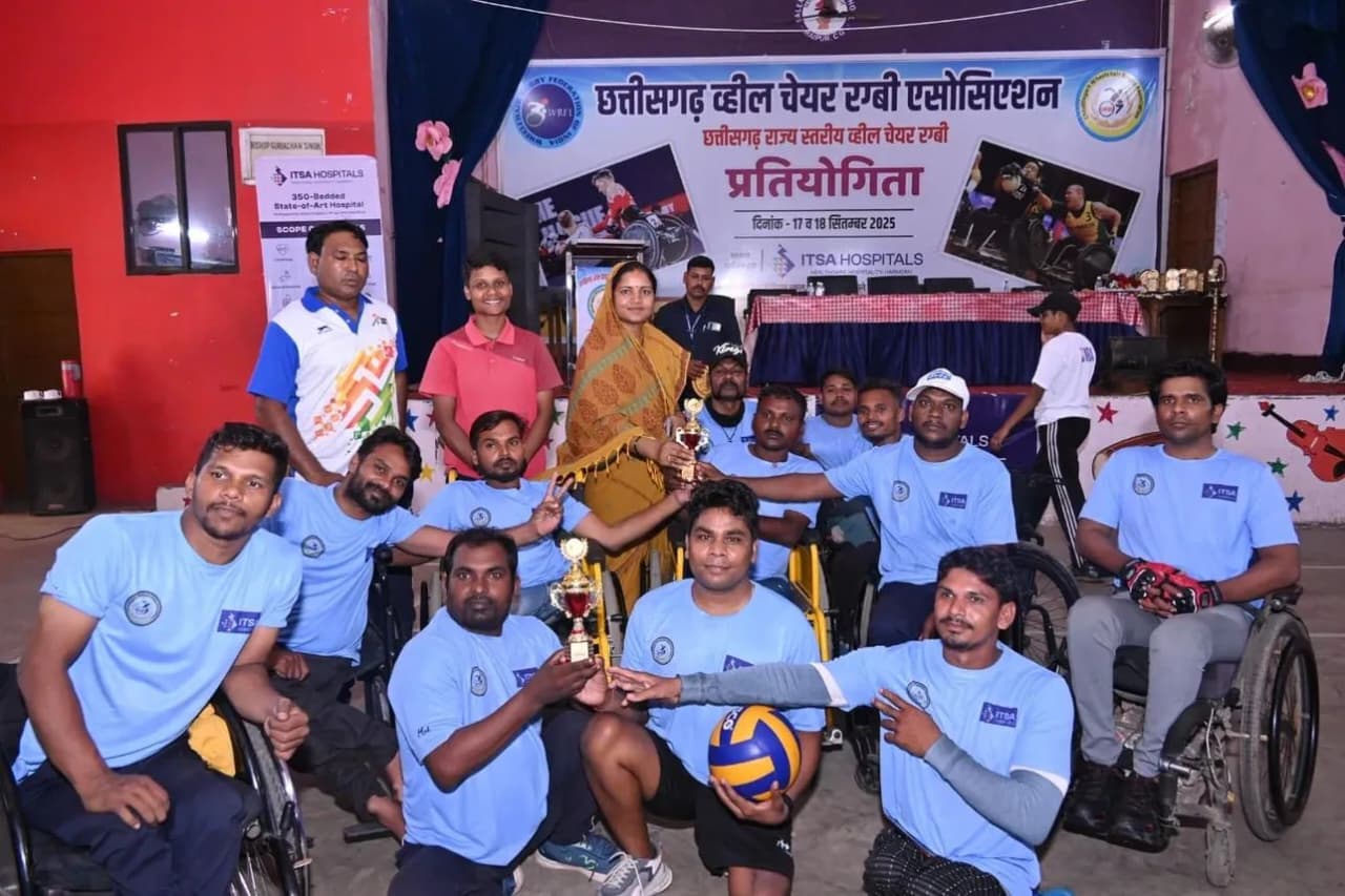 दो दिवसी राज्य स्तरीय छत्तीसगढ़ व्हीलचेयर रग्बी प्रतियोगिता का समापन सालेम स्कूल रायपुर में हुआ प्रदेश भर से 40 से अधिक खिलाड़ियों ने भागीदारी ली मुख्यतः स्पाइनल कॉर्ड इंजरी व सर्वाइकल खिलाड़ियों के साथ-साथ पोलियो खिलाड़ी भी कार्यक्रम में हुए शामिल