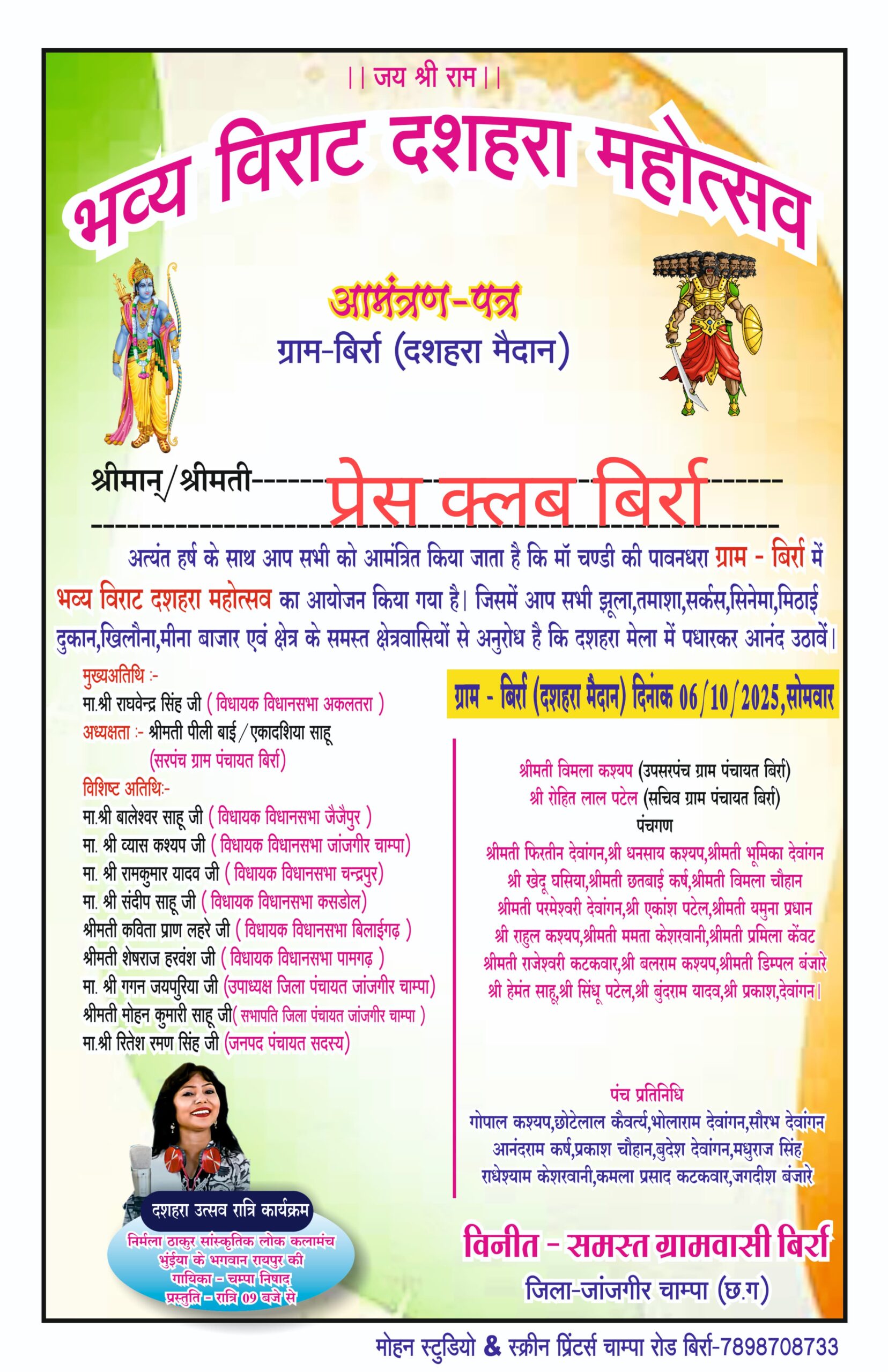 (विराट दशहरा महोत्सव में जुटेंगे जनप्रतिनिधि और होगा चंपा निषाद का सांस्कृतिक कार्यक्रम)