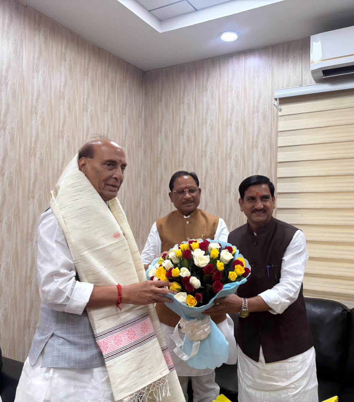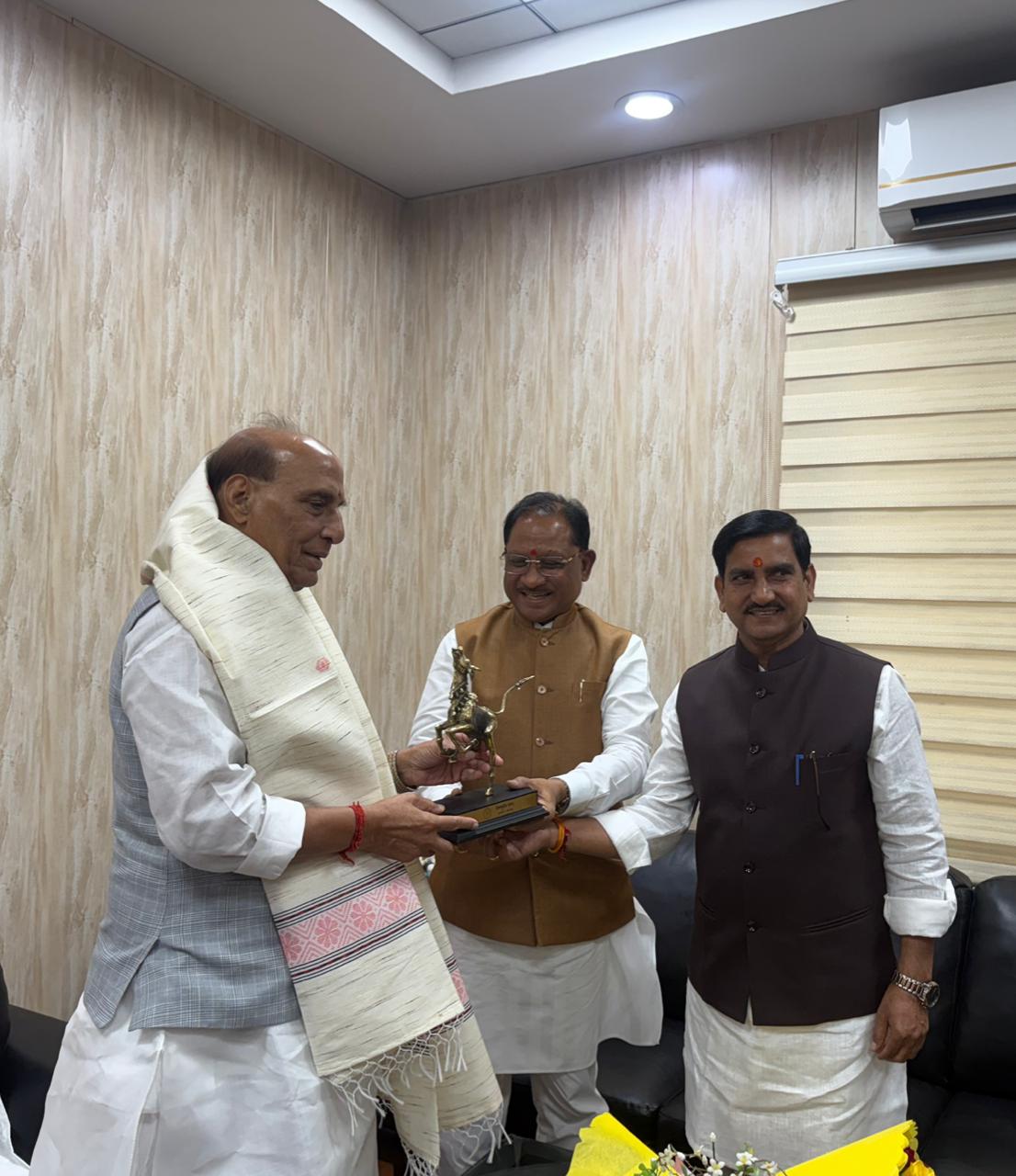 छत्तीसगढ़ के मुख्यमंत्री श्री विष्णुदेव साय ने आज केंद्रीय रक्षा मंत्री श्री राजनाथ सिंह से मुलाकात कर बिलासा देवी केंवट एयरपोर्ट,