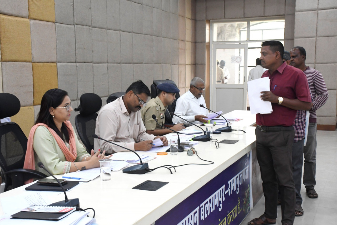बलरामपुर संयुक्त जिला कार्यालय भवन के सभाकक्ष में समय-सीमा की बैठक पश्चात् जनदर्शन का आयोजन किया गया। जनदर्शन में पहुंचे आम नागरिकों ने अपनी समस्याओं को सीधे कलेक्टर के समक्ष रखा। कलेक्टर श्री कटारा ने आमजनों से प्राप्त शिकायत एवं समस्याओं को गंभीरता पूर्वक सुनकर सभी आवेदनों को प्राथमिकता के साथ शीघ्र निराकरण करने हेतु संबंधित अधिकारियों को निर्देश दिए।