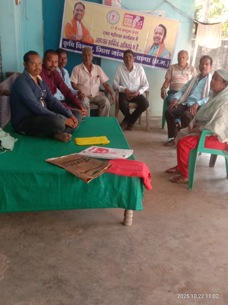 बिर्रा_ राज्य शासन के निर्देशानुसार रजत जयंती कार्यक्रम वर्ष 2025-26 छत्तीसगढ़ राज्य का स्थापना के 25 वर्ष पूर्ण होने के उपलक्ष्य में रजत जयंती कार्यक्रम का आयोजन कराया गया जिसमें उपसंचालक महोदय के द्वारा 17 अक्टूबर से 24 अक्टूबर 2025 तक विकासखण्ड अंतर्गत समिति स्तर पर कार्यक्रम आयोजन करने हेतु निर्देश प्राप्त हुए जिसमें हमारे विकासखण्ड बम्हनीडीह के 20 सेवा सहकारी समितियों क्रमशः सोंठी, चाम्पा, दारंग, बम्हनीडीह, अफरीद, झर्रा, करनौद, पोडीशंकर, लखाली, सरहर, गिधौरी, कडारी, झरना, बिर्रा, सिलादेही, तालदेवरी, डभराखुर्द, सारागांव, कुम्हारीकला एवं चोरिया में कार्यक्रम का आयोजन किया गया। जिसमें कृषि विभाग के वरिष्ठ कृषि विकास अधिकारी, उद्यान विभाग, पशुपालन विभाग एवं मत्स्य विभाग के अधिकारी द्वारा संयुक्त रूप से कार्यक्रम को सफल बनाते हुए किसानों को तकनीकी मार्गदर्शन प्रदान किया गया एवं कृषि विभाग के विभिन्न विभागीय योजनाओं जैसे- एग्रीस्टेक पंजीयन संबंधी जानकारी, प्रधानमंत्री किसान सम्माननिधी योजना, किसान समृध्दि योजना (नलकूप), स्वायल हेल्थ कार्ड योजना, सौर सुजला योजना, धान खरीदी, नेशनल मिशन ऑन इडिबल आयल योजनांतर्गत-आयल-पाम योजना जैसे अन्य योजनाओं के बारे में किसानों को विस्तृत रूप से जानकारी प्रदान की गई। सरकार की महत्वपूर्ण एग्रीस्टेक योजना मे किसानों को पंजीयन में समस्या हो रही थी, उसमें सुधार कर किसानों की समस्या का समाधान किया गया। इस कार्यक्रम को सफल बनाने हेतु विकासखण्ड बम्हनीडीह के वरिष्ठ कृषि विकास अधिकारी श्री परमेश्वर बनर्जी, सेवा सहकारी समिति एवं कृषि विभाग के मैदानी अधिकारी -ग्रामीण कृषि विस्तार अधिकारियों का भरपूर योगदान रहा। इसी कड़ी में बम्हनीडीह विकासखंड अंतर्गत सेवा सहकारी समिति बिर्रा पं क्र 10-12 में कार्यक्रम आयोजित किया गया जिसमें संस्था प्रबंधक नरेन्द्र सिंह,जी आर छात्रे कृषि विस्तार अधिकारी, आपरेटर दीपक देवांगन, संतोष कुमार कश्यप, भगवान दीन, संतोष साहू,क्रांति राजू कश्यप,कांशी राम कश्यप सहित बड़ी संख्या में किसान उपस्थित थे।