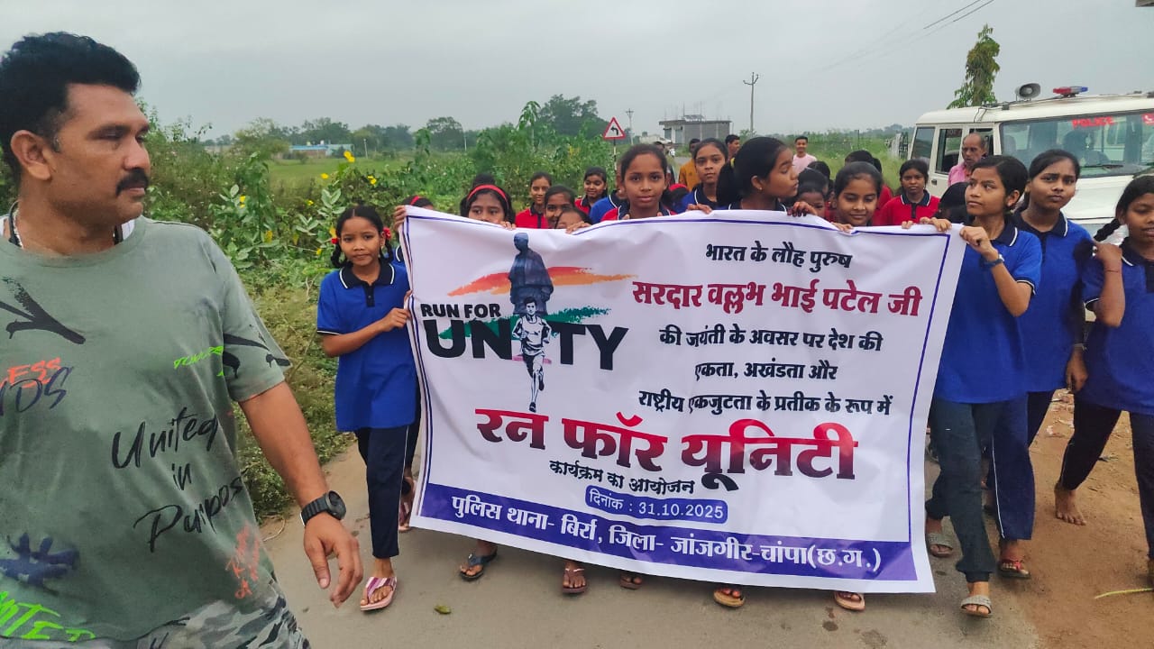 लौह पुरुष सरदार वल्लभभाई पटेल की जयंती पर बिर्रा में किया गया एकता दौड़ हुआ आयोजन