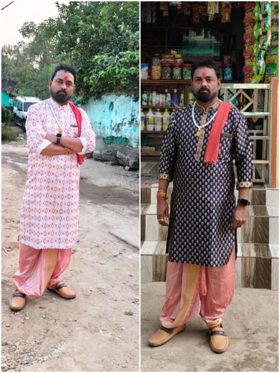 २ लाल वस्त्र, फूल, चावल, दूर्वा देवी पूजन में