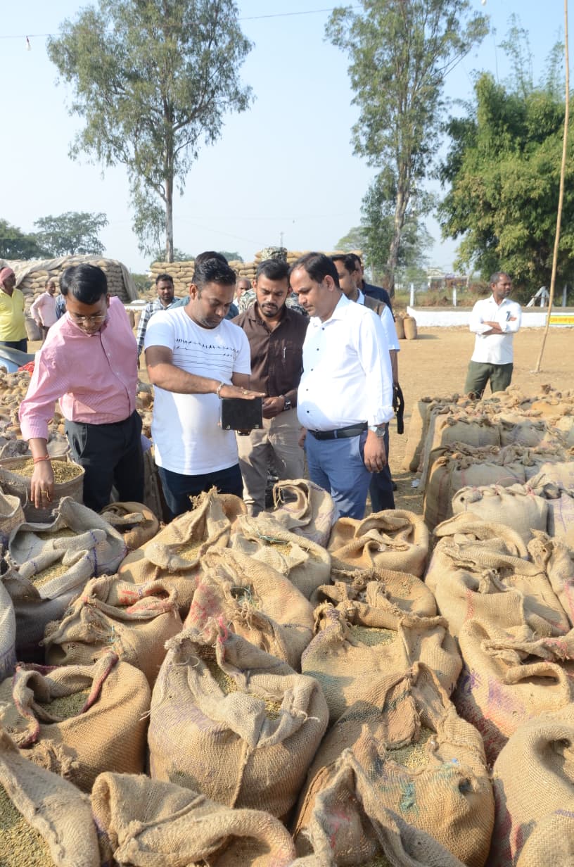 November 29, 2025रायपुर / जिले में जारी धान खरीदी की व्यवस्था का जायजा लेने कलेक्टर डॉ. गौरव सिंह आज उपार्जन केंद्र माना पहुंचे। उन्होंने किसानों द्वारा लाए गए धान की तौल करवाई और मॉइश्चर मीटर से नमी की जांच भी करवाई। कलेक्टर ने किसानों के लिए केंद्रों में की गई व्यवस्थाओं और फसल की स्थिति पर चर्चा की। साथ ही कलेक्टर आज अभनपुर के केंद्री धान उपार्जन केंद्र पहुंचे और धान खरीदी की व्यवस्थाओं का निरीक्षण किया। कलेक्टर ने यहां भी धान को तौलाने और नमी मापक यंत्र की जांच की। कलेक्टर ने मेडिकल किट मंगाकर दवाईयों की उपलब्धता की जानकरी ली। उन्होेंने स्वयं कम्प्यूटर में पंजीकृत रकबा के तहत किसानों का उपार्जन की स्थिति का अवलोकन किया। कलेक्टर ने कहा कि यह ध्यान रखें कि किसी भी स्थिति में अवैध धान की खरीदी न हो इसके लिए अपने क्षेत्र में रकबे का परिक्षण कर जमीनी स्थिति का जायजा लें। साथ ही यह भी ध्यान रखें कि किसानों को किसी भीे प्रकार की समस्या का सामना न करना पड़े।