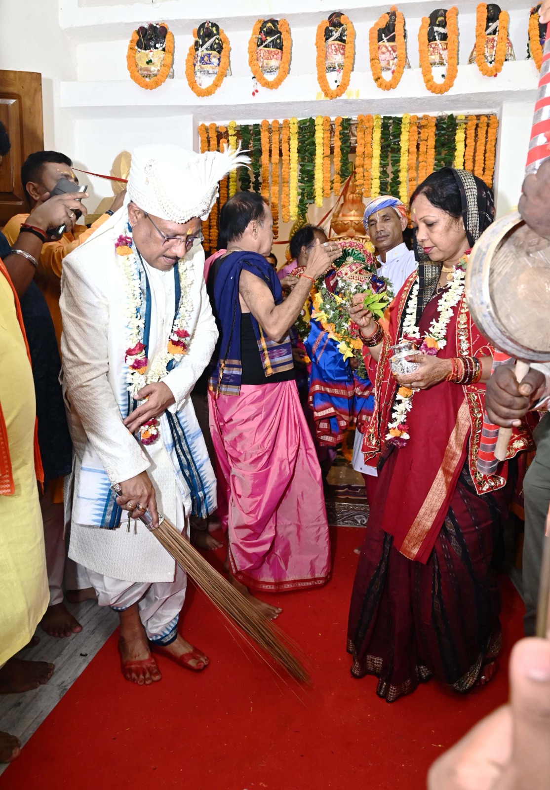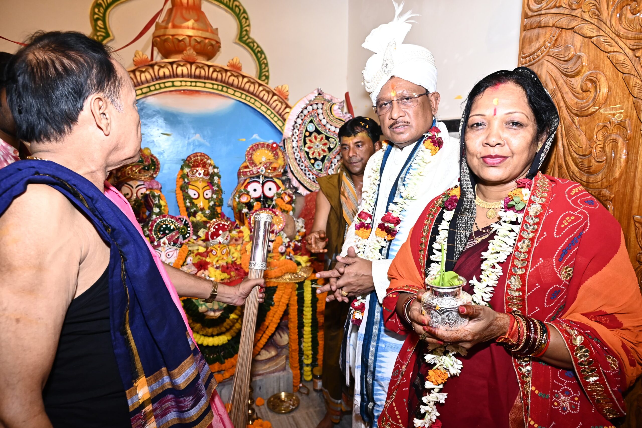 रायपुर। ऐतिहासिक एवं प्राचीन श्री जगन्नाथ मंदिर दोकड़ा में इस वर्ष भी रथयात्रा महोत्सव का आयोजन परंपरागत श्रद्धा, भक्ति और भव्यता के साथ किया गया। मंदिर से रथ यात्रा के रवाना होने से पहले मुख्यमंत्री श्री विष्णुदेव साय एवं उनकी धर्मपत्नी श्रीमती कौशल्या देवी साय ने जगन्नाथ मंदिर में पूरे विधि-विधान से भगवान श्री जगन्नाथ, भाई बलभद्र एवं बहन सुभद्रा की पूजा-अर्चना कर प्रदेशवासियों के सुख, समृद्धि और कल्याण की मंगलकामना की। मुख्यमंत्री श्री विष्णुदेव साय ने झाडू से रथयात्रा के मार्ग को बुहारकर छेरा-पहरा की रस्म निभाई।