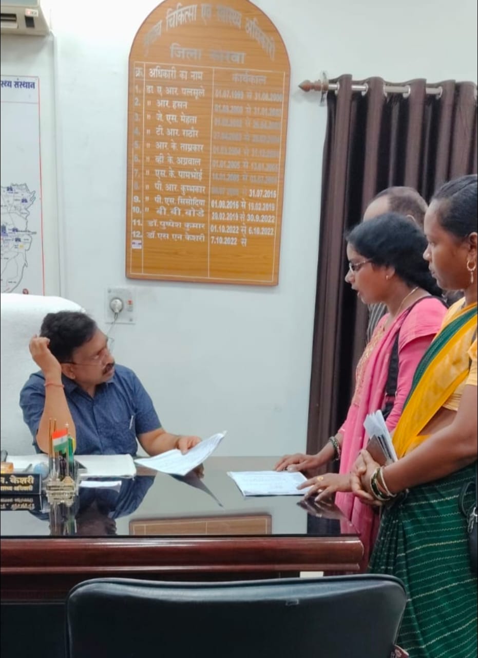 September 9, 2025कोरबा। प्रदेश मितानिन संघ के जिला पदाधिकारी ने जिला के स्वास्थ्य विभाग के मुख्य चिकित्सा अधिकारी कों स्वस्थ्य पंचायत समन्वयक के द्वारा क्षतिपूर्ति भुगतान सत्यापन करने के आदेश के खिलाफ ज्ञापन सौंपते हुए उनकी नियुक्ति पर आपत्ति उठाई.