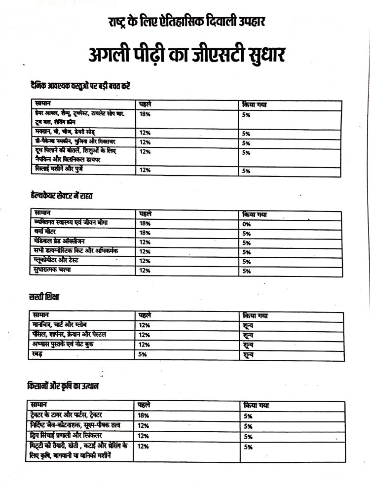 यशस्वी प्रधानमंत्री नरेंद्र मोदी ने 15 अगस्त 2025 को लाल किले की प्राचीर से अपने संबोधन में जीएसटी में अगली पीढ़ी के सुधार करने का आश्वासन दिया था और मात्र बीस दिन की भीतर ही जीएसटी काउंसिल ने इस सुधार को मंजूरी दे दी गई है।