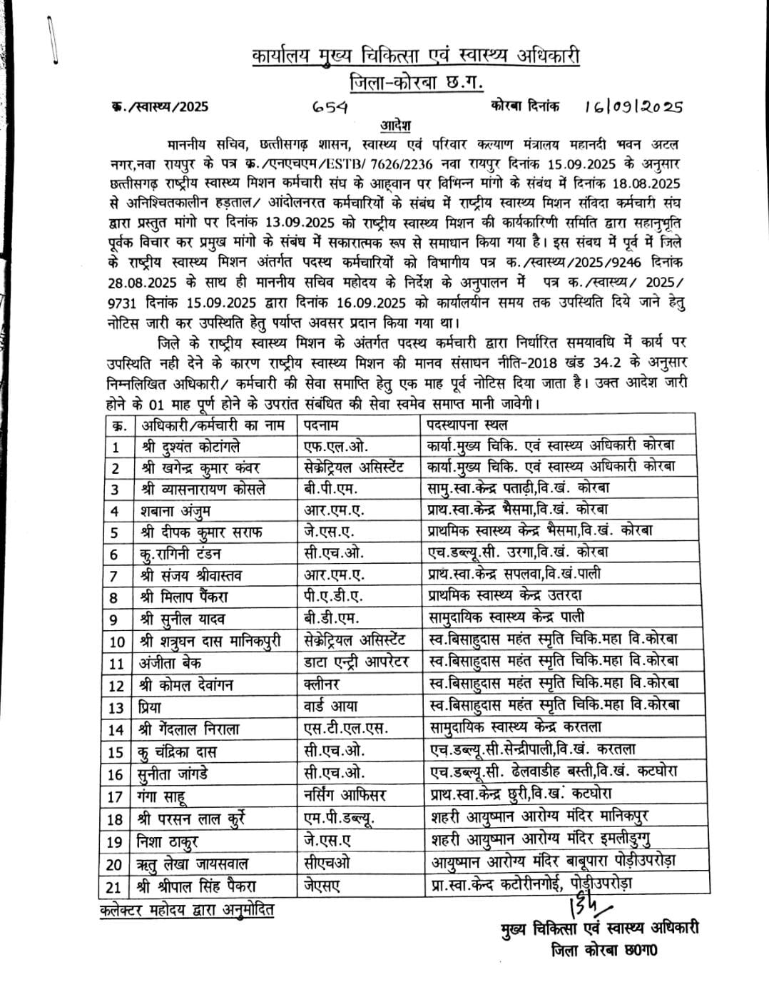 स्वास्थ्य सचिव के अल्टीमेटम का भी नही हुआ असर, हड़ताल पर डटे एनएचएम कर्मचारी, कोरबा में 21 को बर्खास्तगी की नोटिस जारी